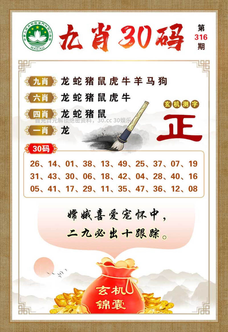 | 316期:九肖【马羊牛蛇鼠虎鸡龙猪】开:马24中 |